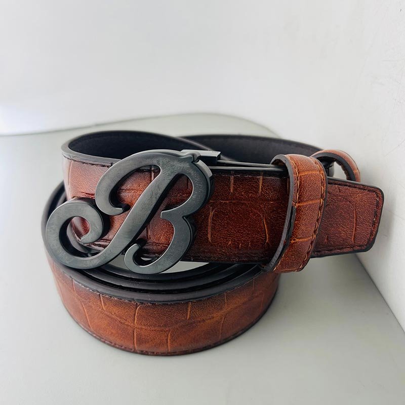 Brown Leather Belt with Black B Buckle