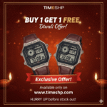 Elevate your wrist game this Diwali with an unbeatable offer from TIMESHP! Introducing the rugged yet stylish Casio World Time watch, now with a “Buy 1 Get 1 Free” Diwali Special. This timepiece boasts world time function, a 10-year battery, and a classic brown leather strap paired with a bronze-tone case. Perfect for the adventurer and the style-conscious alike, it features a clear digital display with Illuminator backlight. Don’t miss this exclusive opportunity to double your style or share the perfect gift. Hurry, this limited stock offer won’t last long