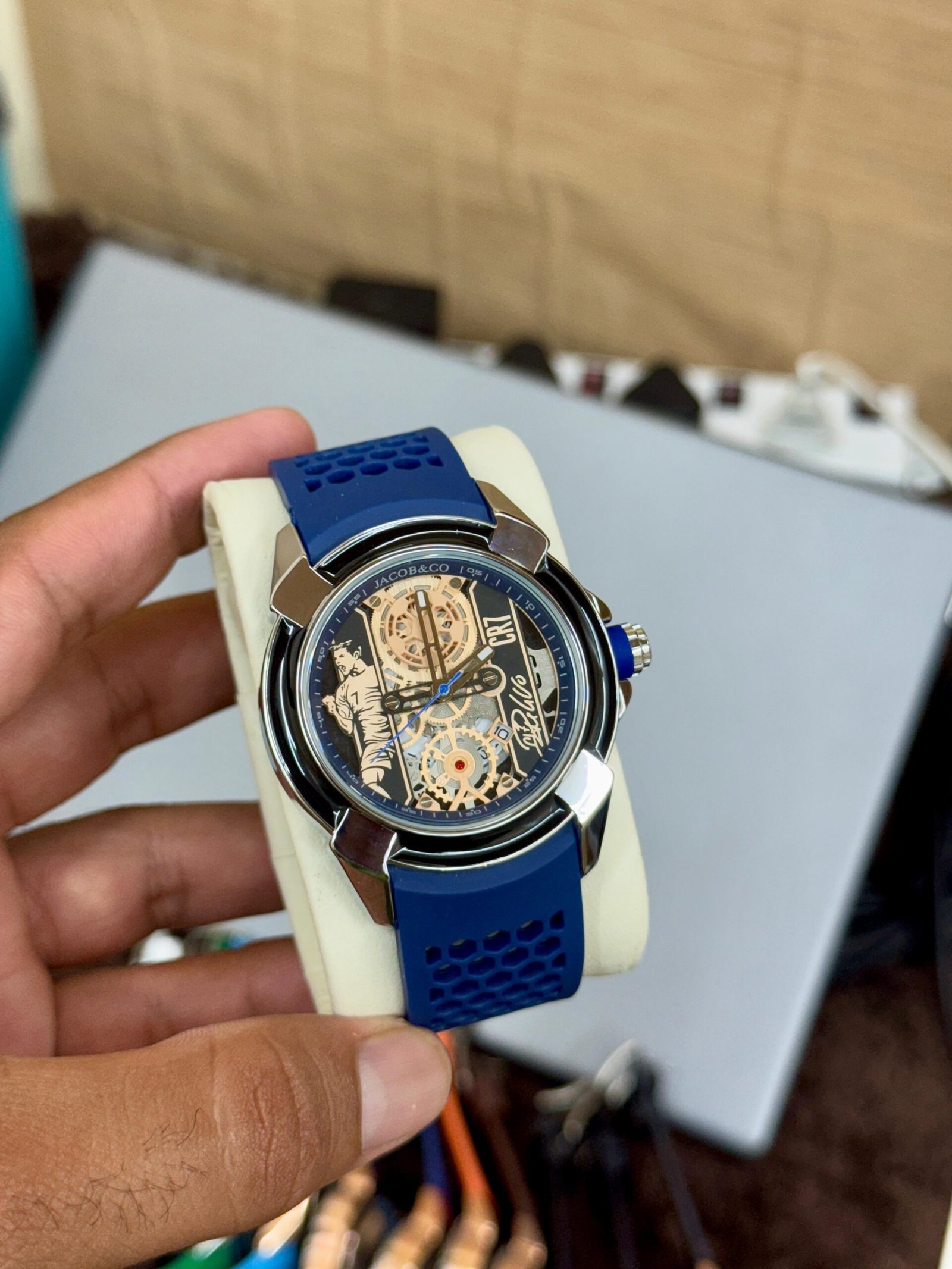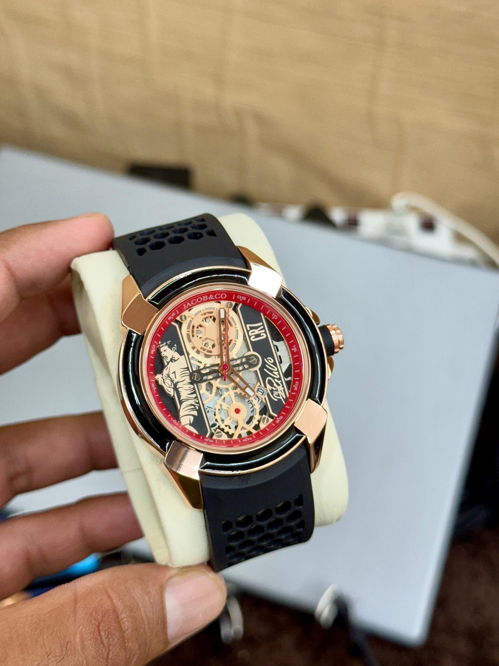 Own a piece of unparalleled luxury and sporting history. This professional Instagram advertisement spotlights four stunning Jacob & Co. CR7 watches, celebrating the iconic partnership between the brand and Cristiano Ronaldo. The curated collection features distinct timepieces with gold accents, each distinguished by a different color strap: black, red, brown, and royal blue. The detailed skeletal structures, including gears and mechanisms, alongside special CR7 touches like his initials and a stylized portrait, are showcased across the original images. For a limited time, get this exclusive design for just ₹1499/-. Don’t miss out on this incredible offer! Limited Stock. Browse all four colors and order now with free shipping. Shop Now!
